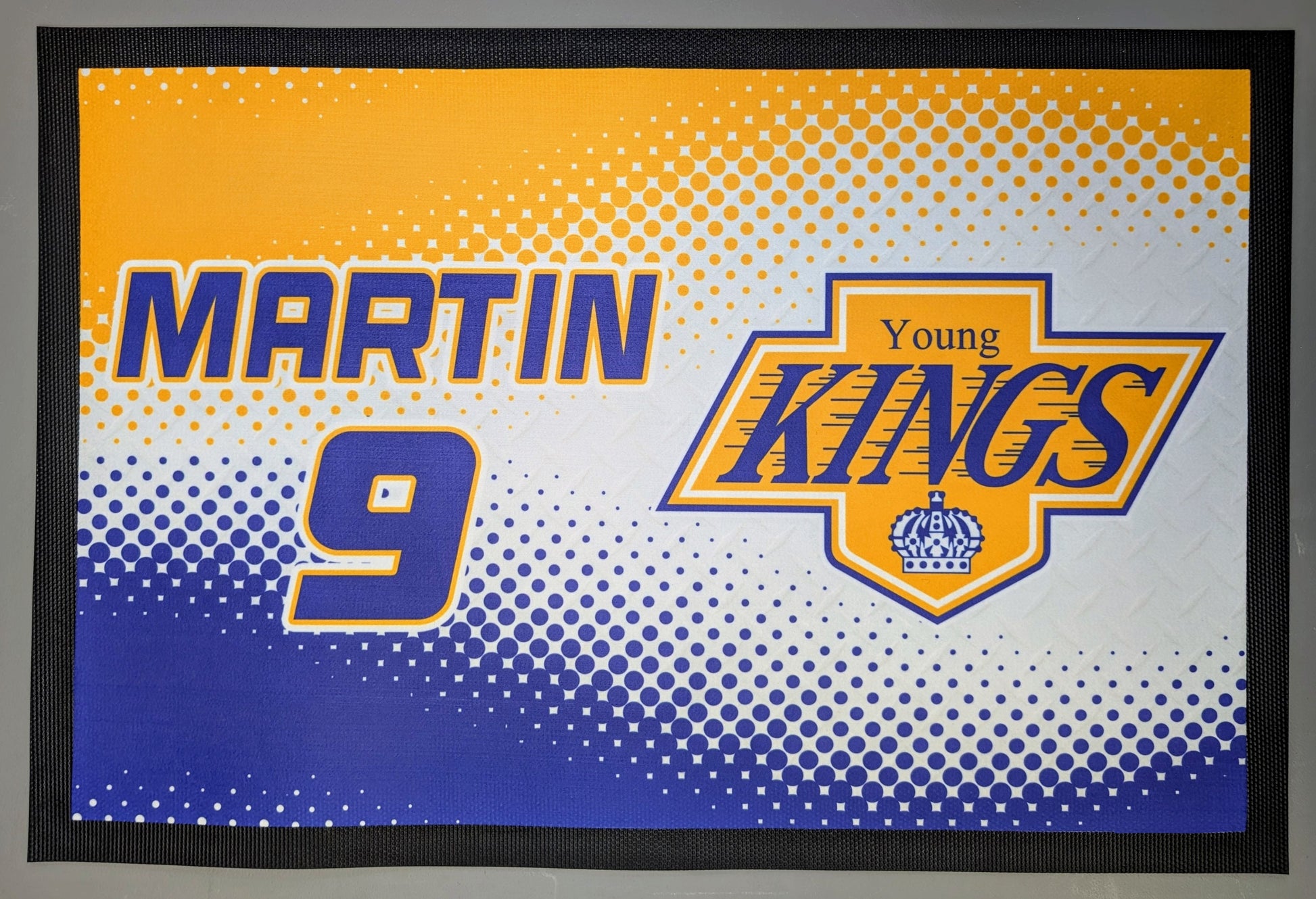 Keep your skates sharp and your look sharper with a custom skate mat! Fully customized with your team logo, player name, and number, these mats add personality while keeping your gear safe and clean. Perfect for the locker room or at home.